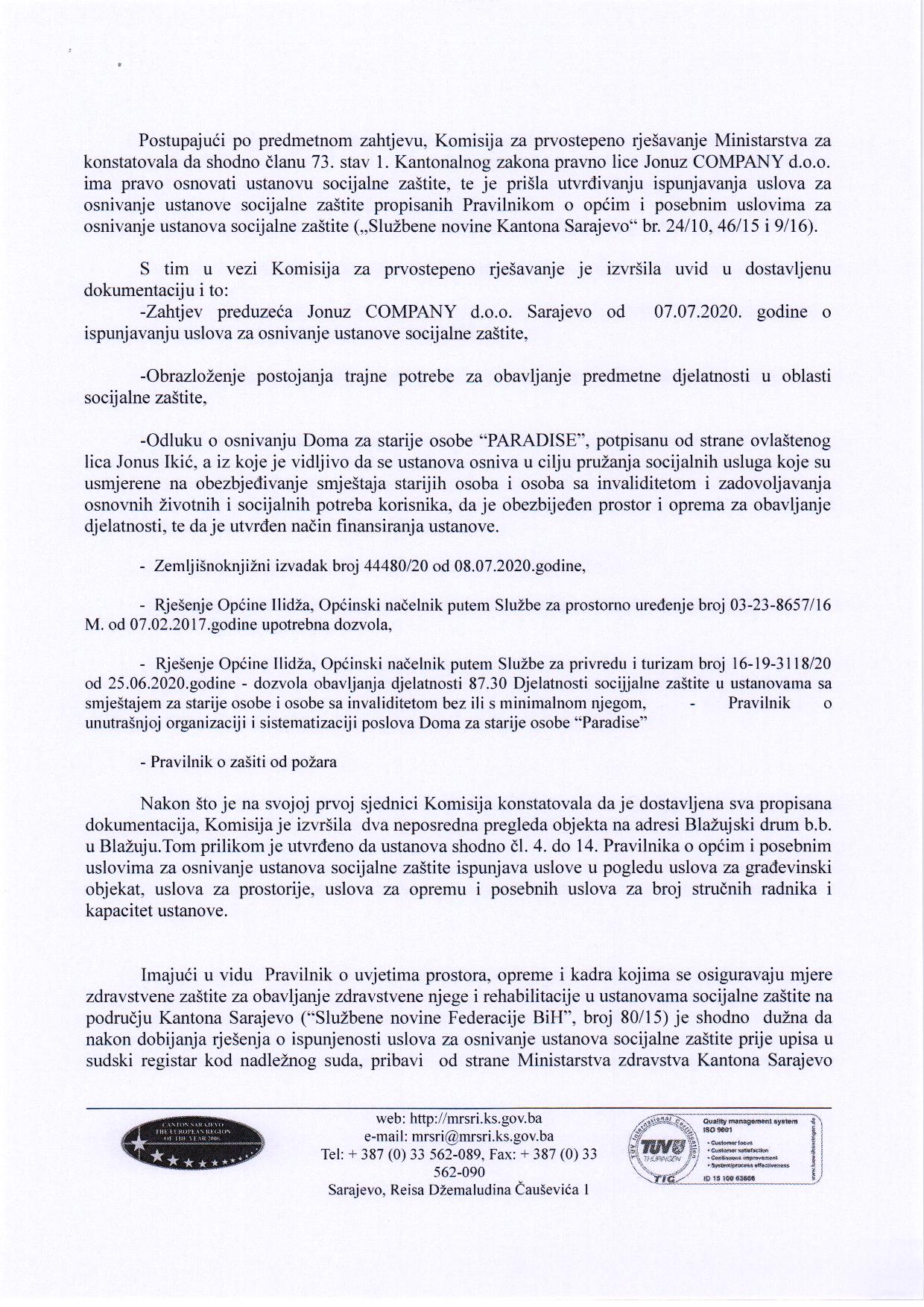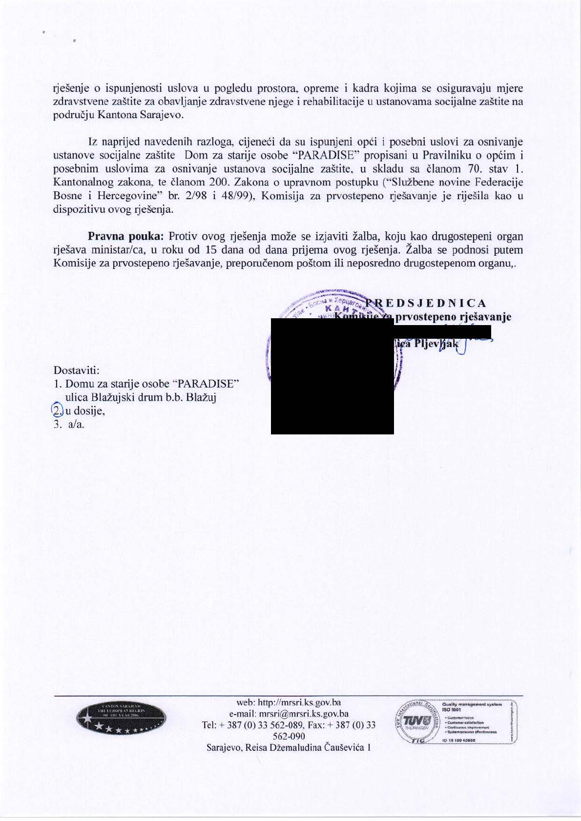 Rješenje Ministarstva za rad, socijalnu politiku, raseljena lica i izbjeglice